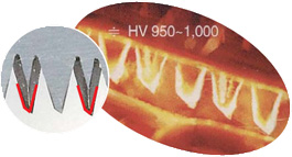Impulse hardening on the edge of the blade (Equipped with a tooth impulse Hardening machine.)